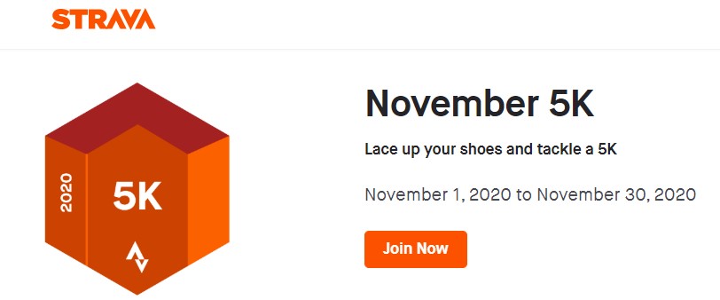 3. Join November 5K Challenge https://www.strava.com/challenges/November-5k-2020